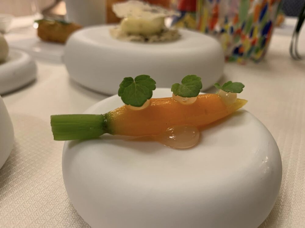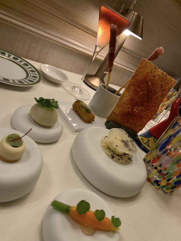 L’occasione di provare alcuni dei suoi piatti presenti nel menu parigino è stata una cena a 4 mani pensata e organizzata insieme allo chef stellato Michelino Gioia, oggi al Pellicano di Porto Ercole.