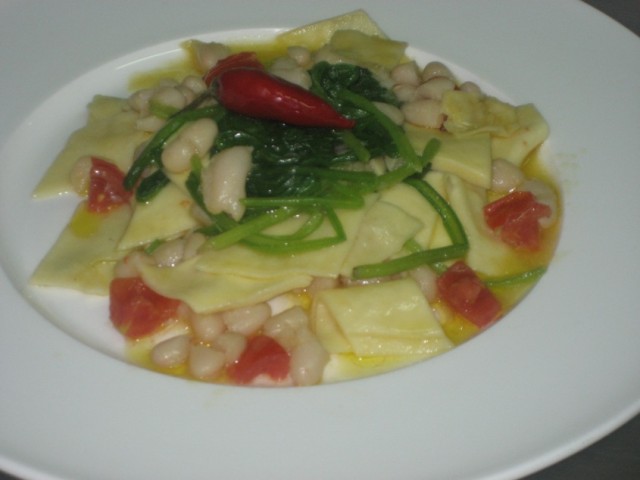 Al termine della cottura dei fagioli questi devono essere una zuppa nella quale verranno cotte le foglie più tenere della scarola e poi la pasta per circa 6-8 minuti. Salare prima di servire .
