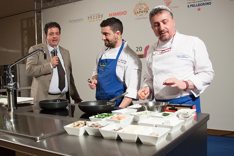 Moderato da Luciano Pignataro, Pasquale Torrente inizia il suo show spiegando che la contaminazione è fondamentale, altrimenti oggi non avremmo nella nostra cucina due elementi base, la pasta ed il pomodoro, giusto per fare qualche esempio.