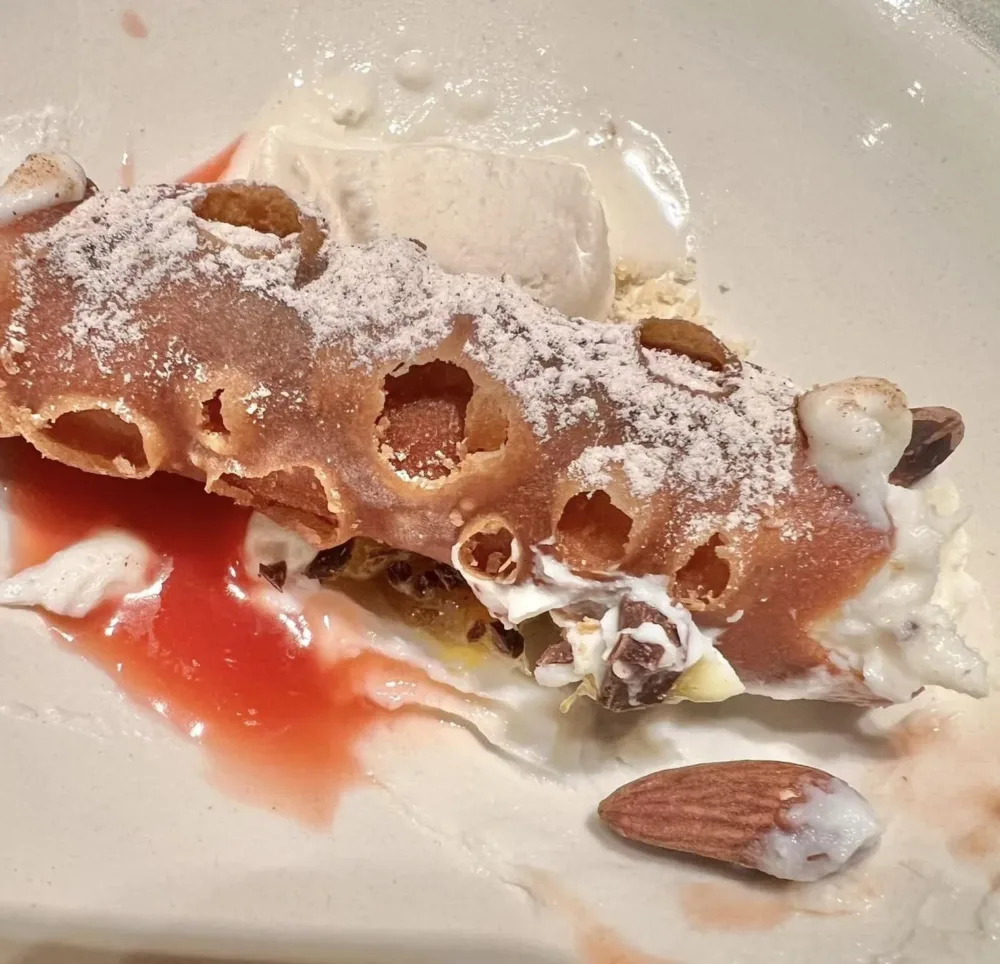 Noi abbiamo provato alcune ricette storiche come gli spaghettoni Taratatà, piatti come il dentice in salsa di capperi davvero straordinario, con la cottura del pesce che solo in Italia sappiamo fare trattendo il mare ed usando le salse per esaltare il sapore e non per reidratare una carne in genere sempre troppo cotta e mltrattata da violente cotture.