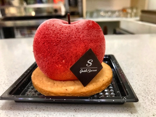 Un’ altro dolce che ricorda nel gusto e nella forma un frutto tipico, è Mela Annurca, preparato con mousse al cioccolato bianco e composta di mela annurca, poggiata su un biscotto di frolla alla nocciola.