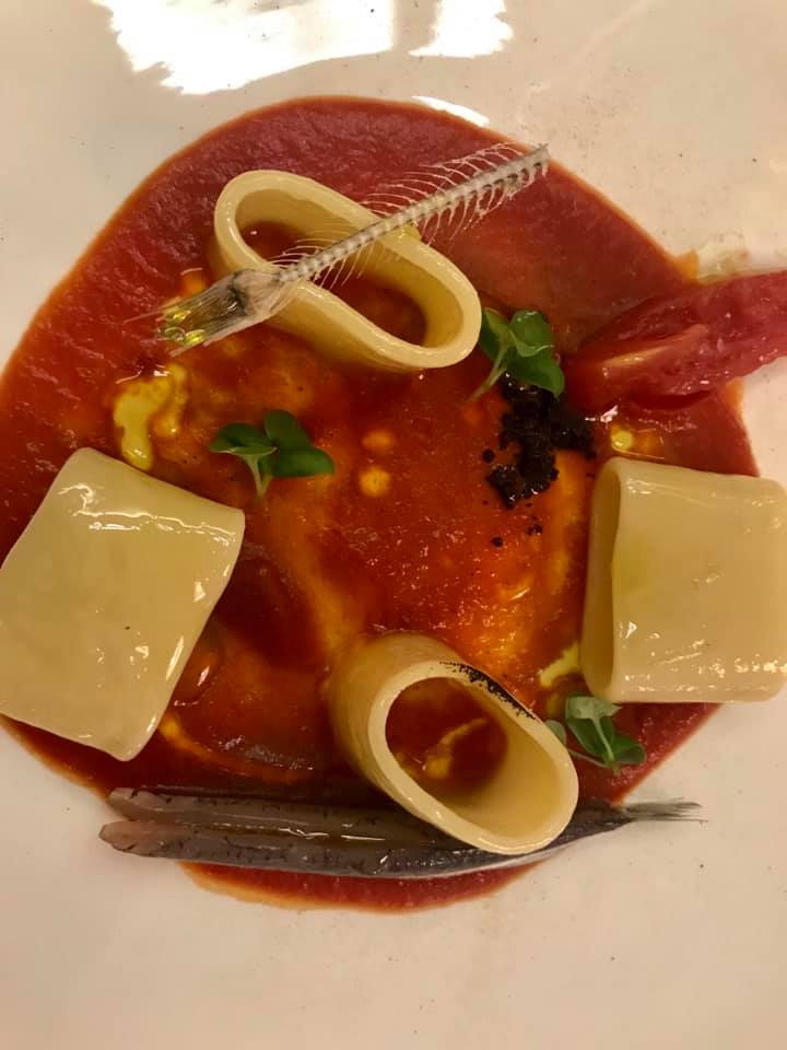 Anche qua piatto molto concettuale anche se più “napoletano”. Molto intenso il sapore estratto dal pomodoro.