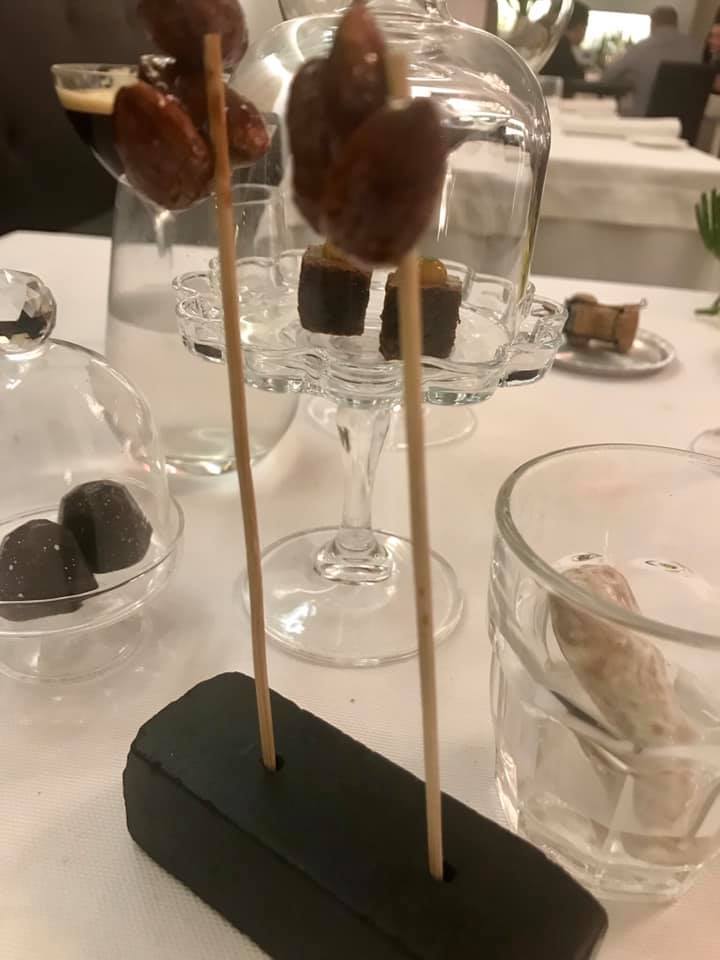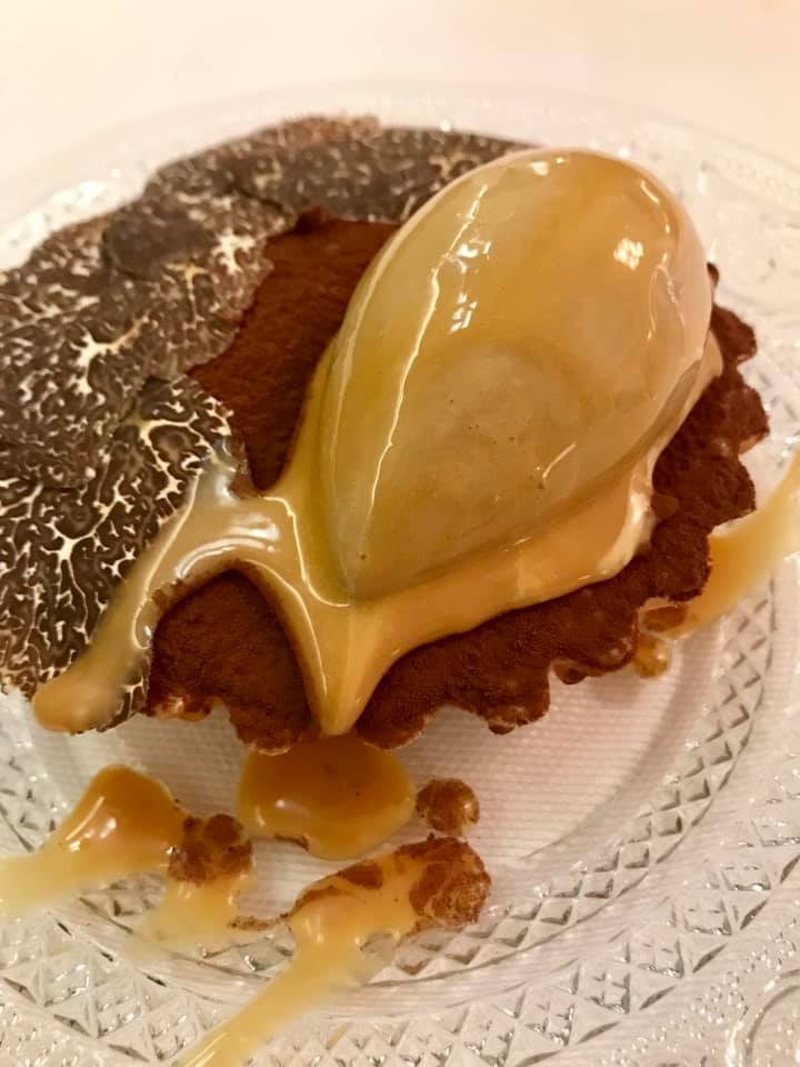 Piazzetta Milu’. Tartelletta al tiramisu’. tofu di amaretto e tartufo nero