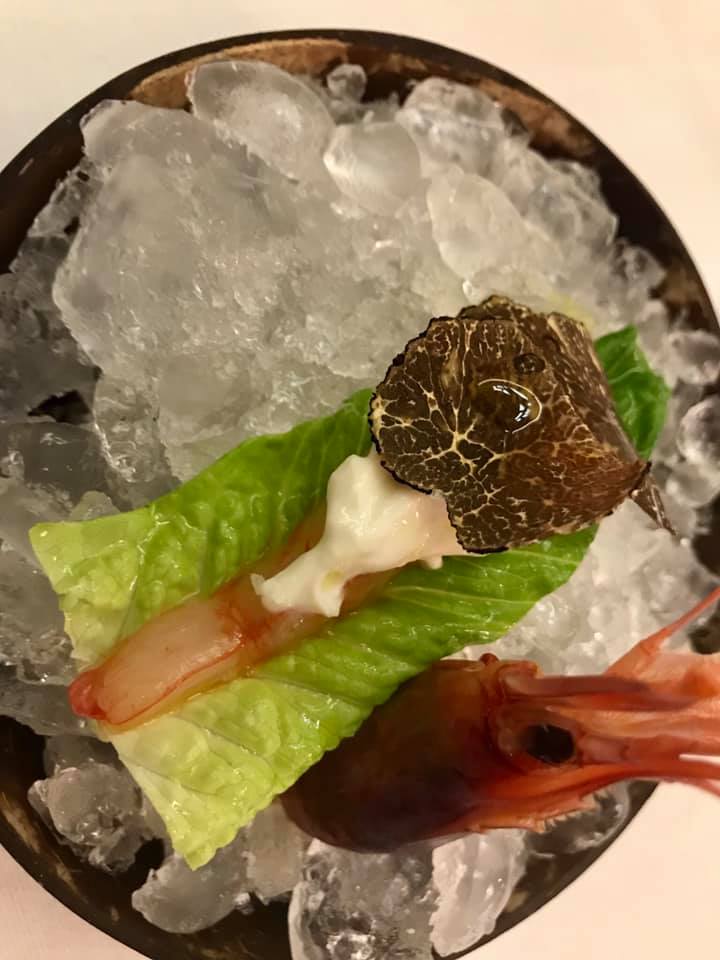 Piazzetta Milu’. Tacos di gamberi, burrata e tartufo nero