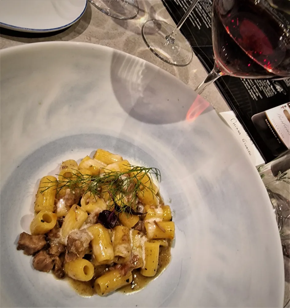 Godurioso l’abbinamento con i paccheri al ragù napoletano di 70 ore dello chef. Ogni commento è superfluo!