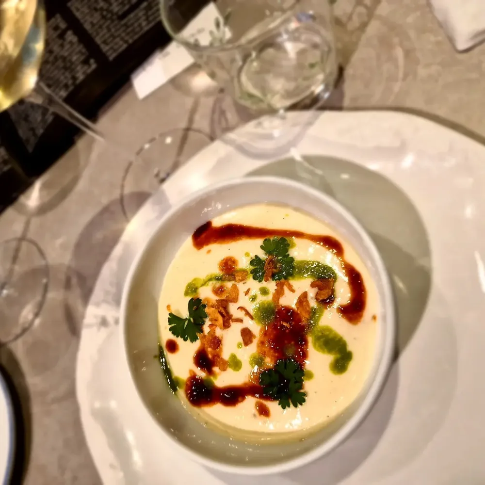 seppia all’amatriciana, spuma di patate e cipolla croccante