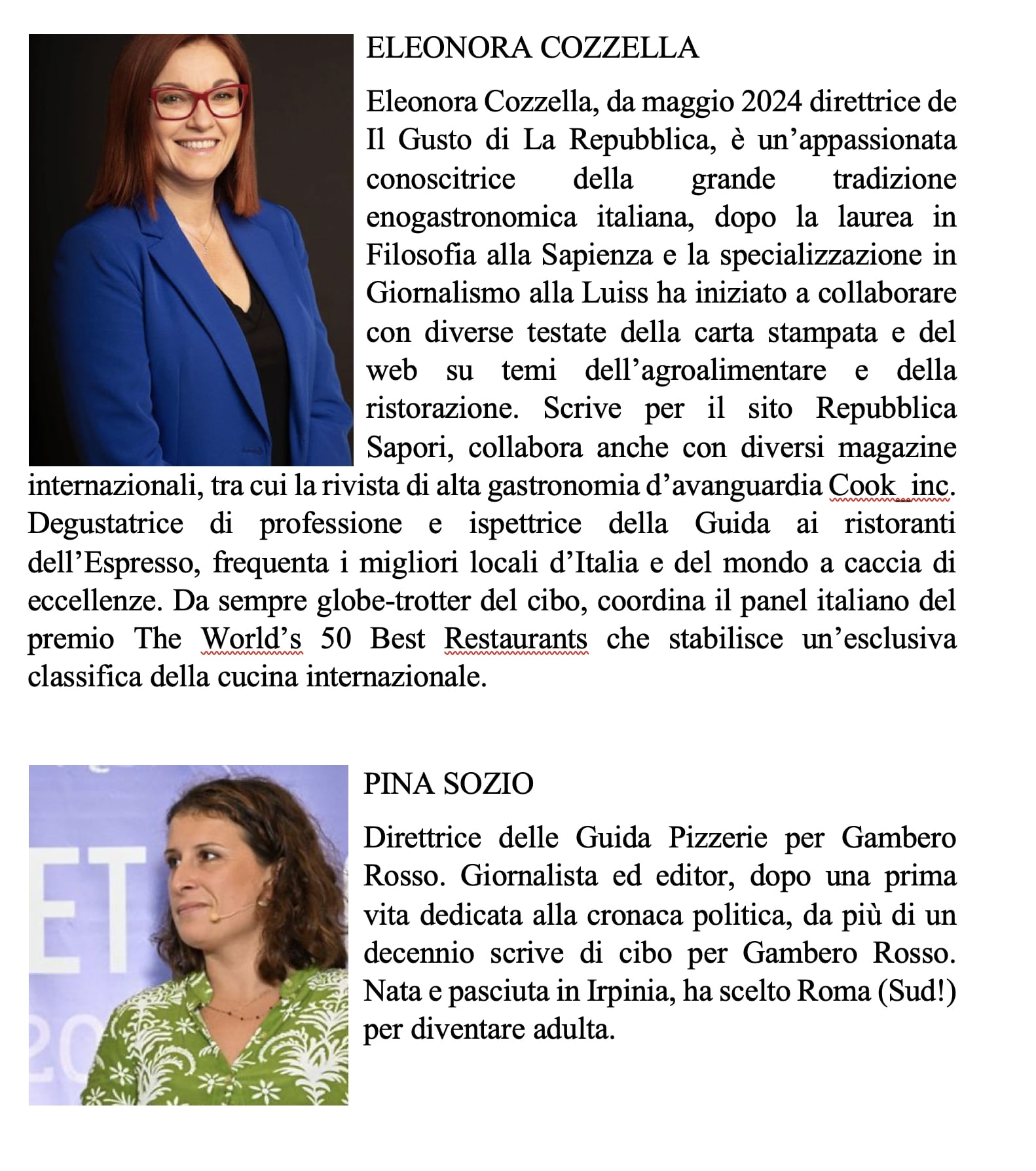Eleonora Cozzella, da maggio 2024 direttrice de Il Gusto di La Repubblica, è un’appassionata conoscitrice della grande tradizione enogastronomica italiana, dopo la laurea in Filosofia alla Sapienza e la specializzazione in Giornalismo alla Luiss ha iniziato a collaborare con diverse testate della carta stampata e del web su temi dell’agroalimentare e della ristorazione. Scrive per il sito Repubblica Sapori, collabora anche con diversi magazine internazionali, tra cui la rivista di alta gastronomia d’avanguardia Cook_inc. Degustatrice di professione e ispettrice della Guida ai ristoranti dell’Espresso, frequenta i migliori locali d’Italia e del mondo a caccia di eccellenze. Da sempre globe-trotter del cibo, coordina il panel italiano del premio The World’s 50 Best Restaurants che stabilisce un’esclusiva classifica della cucina internazionale.
