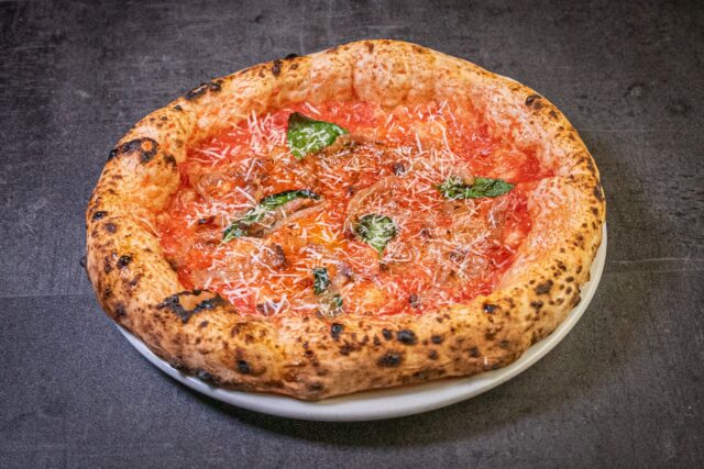 Pizza Amatriciana di Stile Napoletano: Questa specialità rappresenta una reinterpretazione della tradizionale pizza amatriciana, tipica della cucina laziale. Preparata con un impasto idratato ed elastico, la pizza viene condita con sugo di pomodoro, guanciale, pecorino romano grattugiato e una spolverata di pepe nero. La combinazione dei sapori forti e salati del guanciale e del pecorino crea un equilibrio perfetto con l’acidità e la dolcezza del pomodoro.