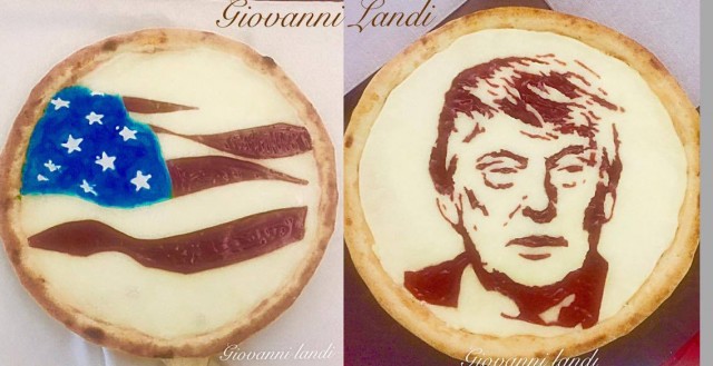 E sì, c’è pure la pizza che porta impresso il volto di Donald Trump, il nuovo Presidente Usa.