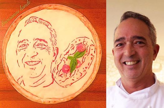 L’ha fatta Giovanni Landi, un pizzaiolo napoletano che gira un po’ per l’Italia, l’ultima sua tappa è stata Venezia, ed ha la passione di creare i volti dei personaggi sulla pizza.