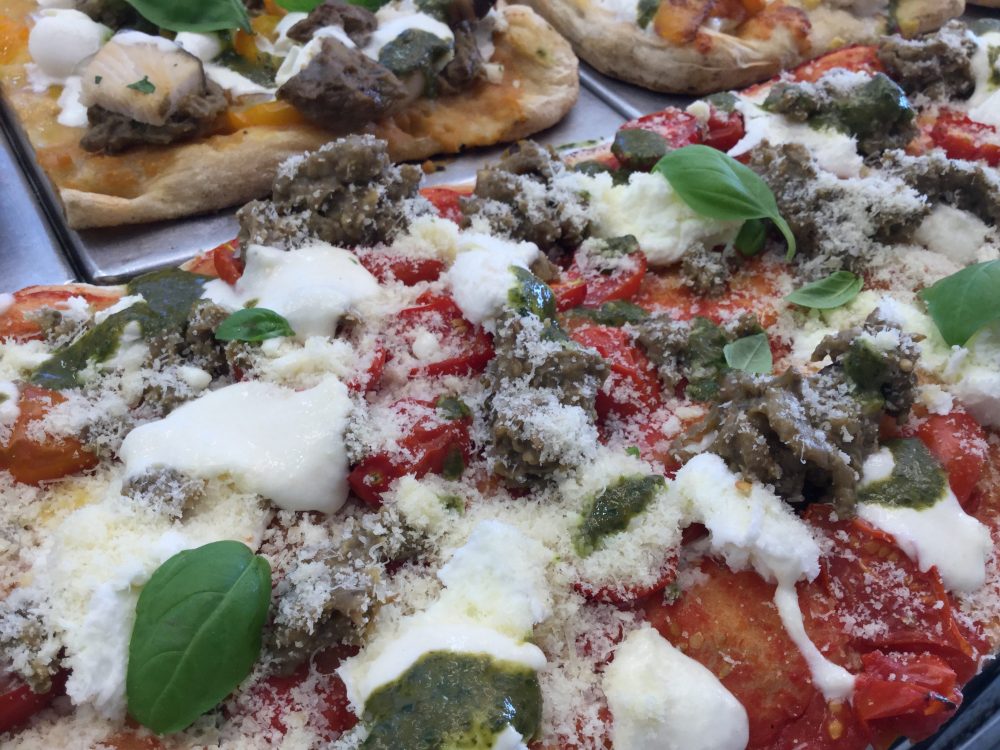 “Per esempio in questi giorni” ci dice Antonio “visto che sono finite le melanzane, sto usando i broccoletti o la zucca e sto preparando una pizza con i fichi, burrata e guanciale”