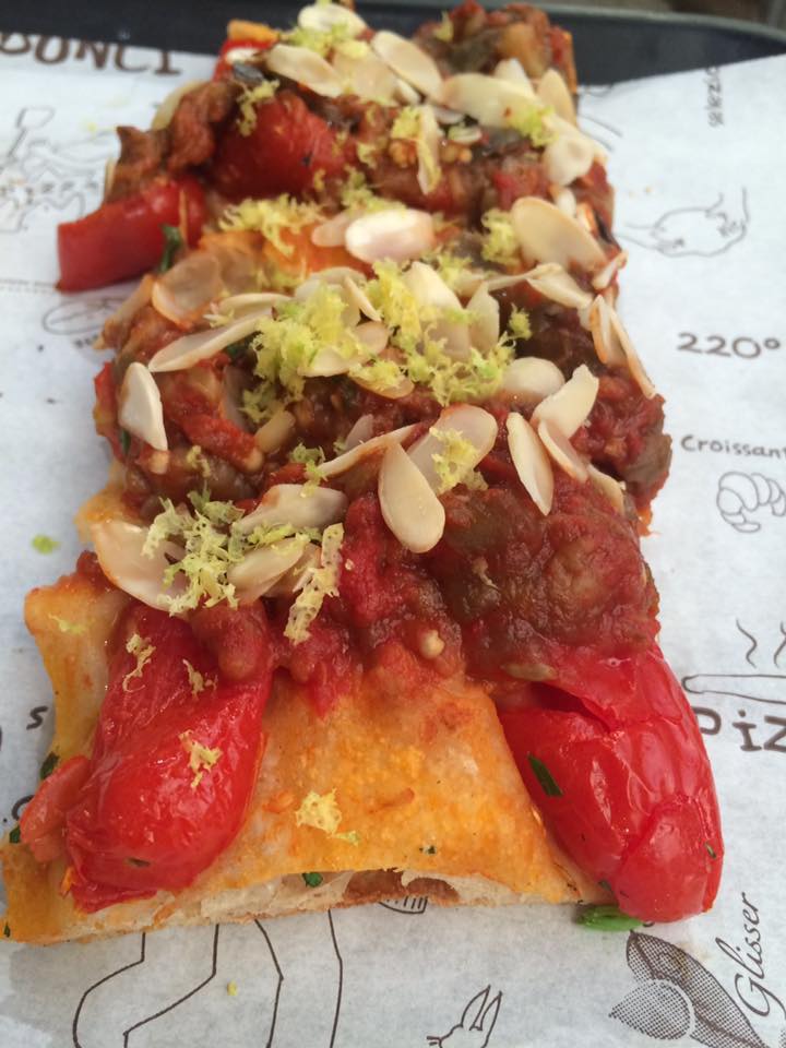 Pizzarium, pomodoro, melanzane, mandorle, limone
