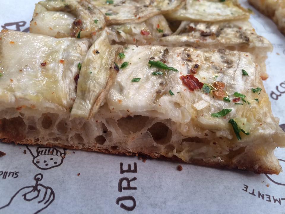Le pizze costano dai 19 ai 25,50 al chilo. Base croccante e fragrante, leggera come deve essere, con superficie soffice ma mai gommosa, ad accogliere farciture quasi tutte eccezionali. Con 6 euro – il prezzo di un panino scongelato in autogrill, ci piace ricordarlo – assaggi la bianca con salsiccia, tanto semplice quanto goduriosa.