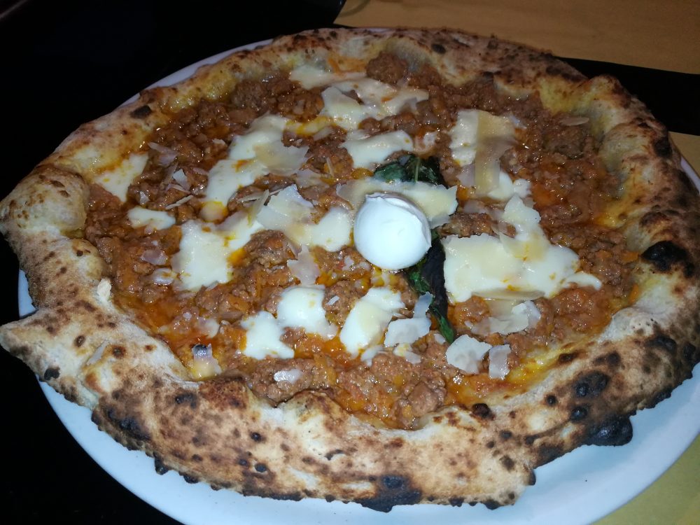 Nello Cerqua ha rilevato questo pub circa tre anni fa e lo ha implementato aggiungendo il suo forno a legna. Nello si è formato prima di tutto al “Vagabondo”, lo storico locale di famiglia, e si è poi impegnato a perfezionarsi fino a diventare anche istruttore di corsi professionali per pizzaiolo. La sua pizza mi è capitata sott’occhio sui social e mi ha stuzzicato sia per la parte visiva dell’impasto sia per gli ingredienti di condimento. Così abbiamo deciso di scoprirne anche il gusto!