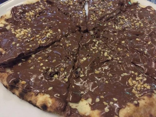 Golosissima la pizza con impasto dolce, nutella e granella di nocciole.