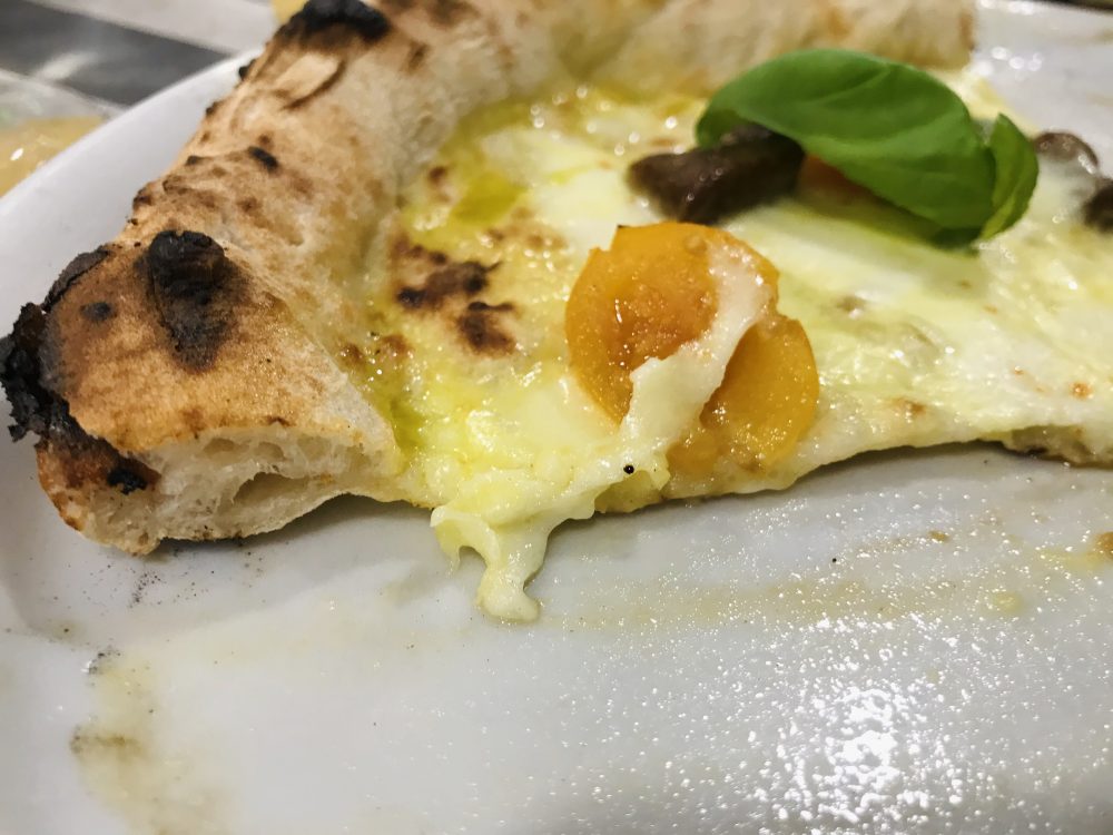 Le pizze del mese sono ora la pizza di Scarole e la Zafferano: quest’ultima prevede il fiordilatte, i porcini, il piennolo giallo del Vesuvio, lo zafferano di Pietramelara di Gaetano Leonardo e il basilico.