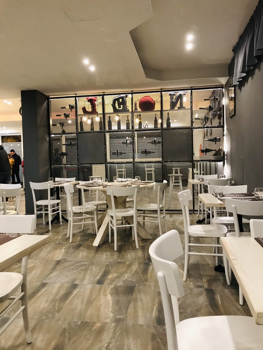 Il locale, molto grande, ha all’ingresso il forno e alcuni tavoli da appoggio per il take away. che offrono anche la possibilità di mangiare velocemente la pizza a chi non vuole aspettare di arrivare a casa. Questo ambiente è separato dalla sala, che conta una settantina di coperti distribuiti in comodi tavoli in un’ambientazione moderna con vista sulla cucina.
