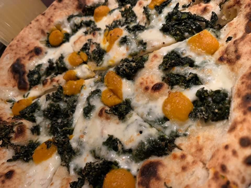Terzo elemento, la metamorfosi della pizza stessa: anzitutto si inizia con delle focacce e salsette, snack di olive e polenta fritta. La pizza poi è essa stessa una evoluzione di quella di Coccia perché c’è un po’ di biga che rafforza l’elemento panoso ed è anche meno scioglievole della napoletana classica. Dunque, in estrema sintesi, una pizza napoletana che può essere immediatamente leggibile anche fuori Napoli.