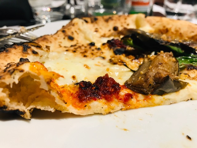 Dalla proposta di pizze stagionali, la Scapece ma non troppo, di melanzane, è tra le pizze che meritano l’assaggio. Gli ingredienti ben dosati, come le melanzane fritte marinate alla scapece con basilico, menta e aceto balsamico che si alternano alla nduja calabra, al crumble di biscotto salato alle mandorle, al fior di latte di Agerola e all’ottimo olio extravergine.