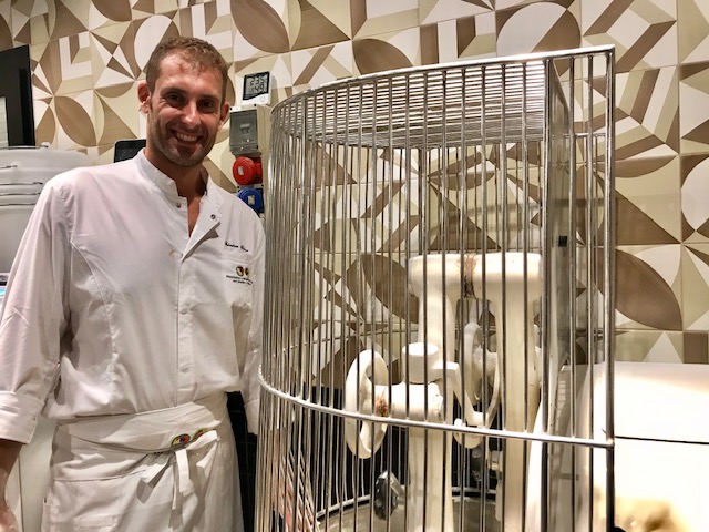 Fate una visita alla loro scintillante pizzeria di San Giorgio a Cremano per capire di che cosa parlo. Gusto, ricercatezza e contemporaneità nell’arredo, con gli ampi spazi divisi da pareti di vino. Sedie comode e mise en place semplice mettono a proprio agio.