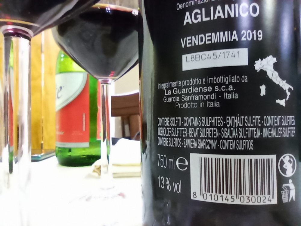 Il vino della casa è un po’ troppo dolciastro per i nostri gusti e pertanto ci orientiamo sull’ottimo Janare – Sannio Aglianico Dop – de La Guardiense.