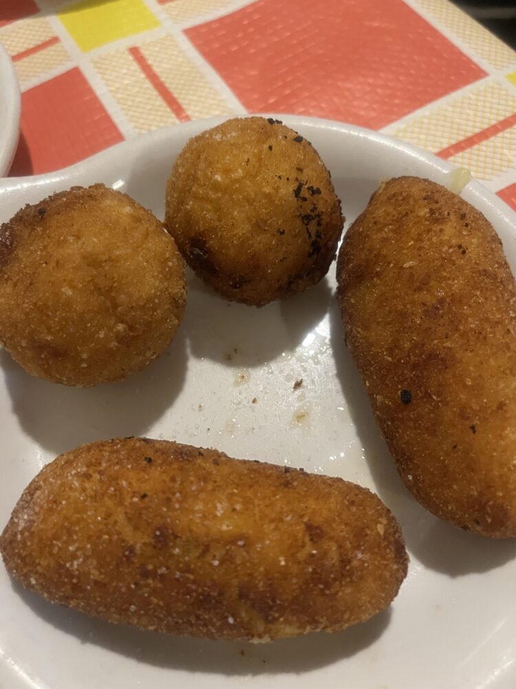 Dicevamo che la Cantina del Gallo propone sia cucina che pizzeria e noi abbiamo optato per entrambe. Come antipasto, un bel fritto misto ci voleva, con crocché, arancini, straccetti di pizza fritta con rucola e pomodorini, montanarine al forno e triangoli di frittata di pasta ripiena.