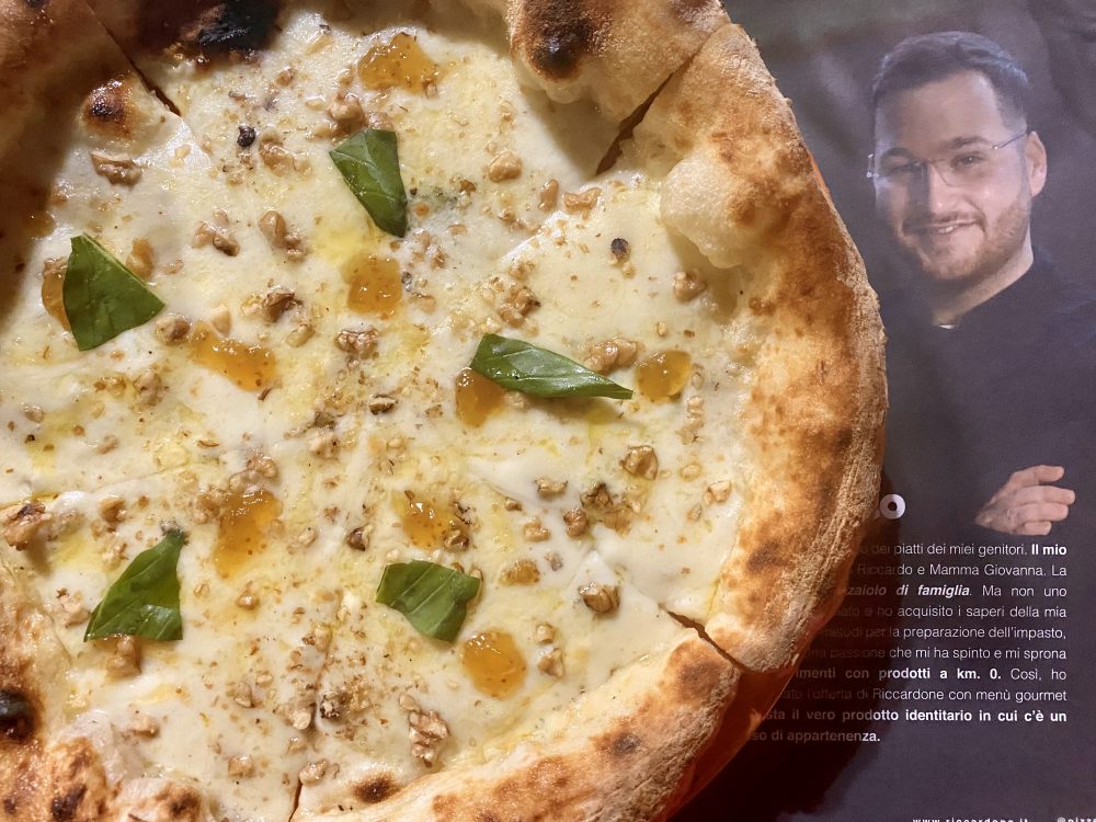 Se siete intraprendenti e vi rimane ancora un po’ di spazio, lasciatevi tentare dalla pizza Pergamena del Monaco, un must di Riccardone, il cui topping gioca su note dolci con accenni piccanti: confettura di fichi vesuviani 100% Bio, provolone del Monaco, noci di Sorrento, gorgonzola piccante e fior di latte di Agerola.