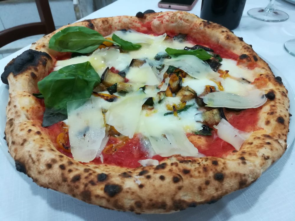 Complice il filo d’olio a crudo, il basilico messo senza avarizia ed il Provolone del Monaco che si scioglie gradualmente con il calore residuo della pizza, il profumo di entrambe è assai inebriante. Veramente ben riuscito l’accostamento delle Papaccelle con le patate e la salsiccia secca, che in armonia con gli altri ottimi ingredienti di condimento regala delle fantastiche sensazione alle papille gustative e all’olfatto. Sull’Ortolana le verdure sono ben fritte e con la polpa interna non disidratata, tale che ad ogni morso esplodono del loro sapore reso unico dalle scaglie del Provolone del Monaco che si fondono gradatamente su di esse.