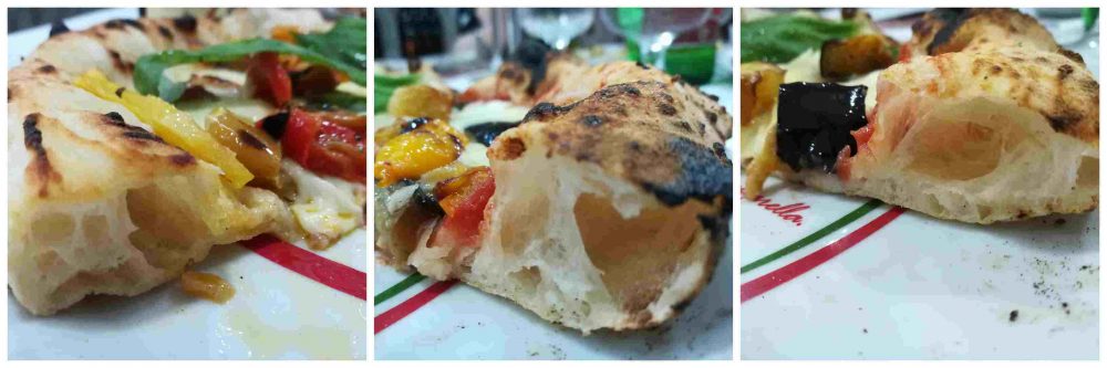 Tutti questi eccellenti ingredienti non avrebbero potuto regalare le stesse sensazioni se non fossero stati supportati da un pregevole impasto quale è quello di Gianpio Grillo (Proprietario e Pizzaiolo del locale). Un impasto indiretto con biga corta, fatto con farine tipo 0 e tipo 00 dei Molini Pivetti con grani certificati di origine esclusivamente Italiana, e idratazione intorno al 70%. Inutile rimarcare termini quali leggerezza, scioglievolezza e digeribilità, in quanto queste proprietà non possono che essere intrinseche quando si dà la definizione di “pregevole” ad un impasto che, nello specifico, va a formare una pizza con dei cornicioni “aerati” che, come volume, vanno sì oltre i “tradizionali napoletani” ma che non raggiungono sicuramente gli eccessi a cui spesso ci si spinge quando si vuole seguire il filone della biga e della “pizza a canotto”.