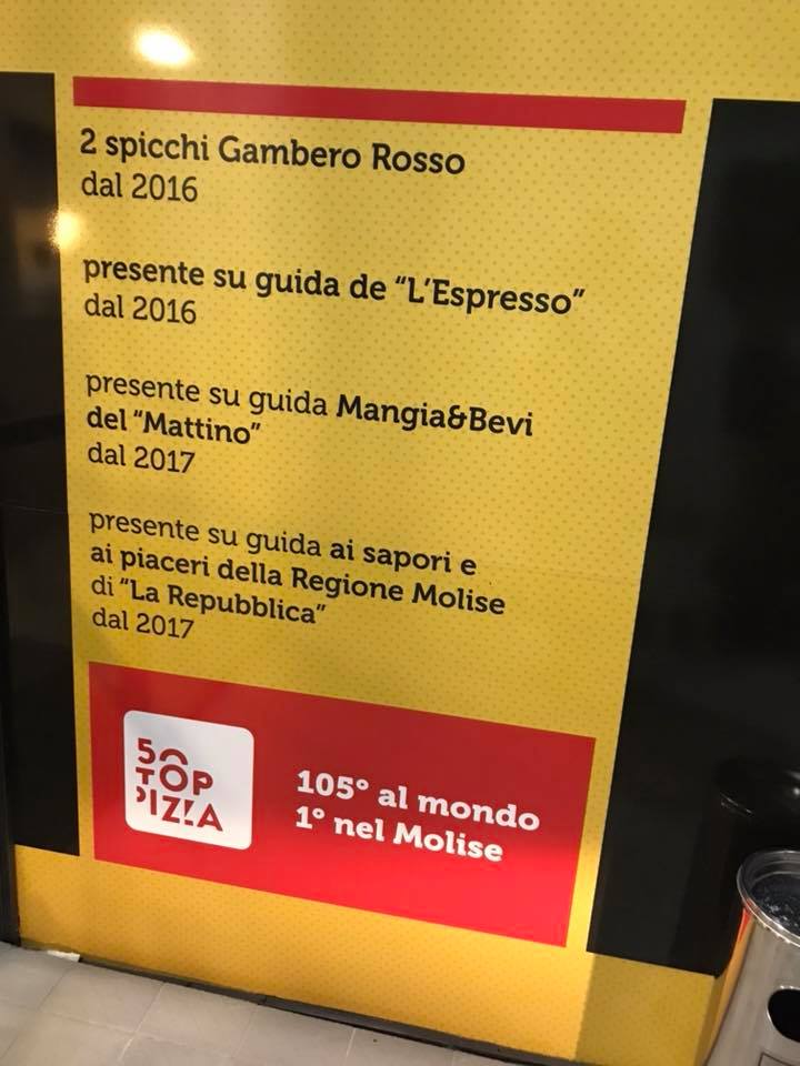 E’ arrivato alla soglia dei primi cento della classifica 50TopPizza quando aveva un piccolo spazio, sempre nel centro di Campobasso, ma adesso con questi nuovi locali, ampi, dotati di due forni, arredati in modo allegri e soprattutto con una filosofia che mette l’arte del pizzaiolo napoletano al servizio dei prodotti del Molise. Terzo locale dunque, per questo ragazzo di San Giovanni a Teduccio, un quartiere che sforna pizzaioli da esportazione e dove il Mulino Caputo, che pure ha una sede nuova in Molise, ha il suo cuore. Storie parallele, dunque, e identitarie.