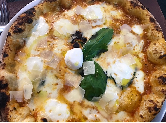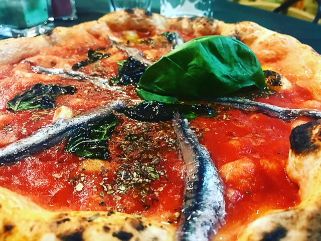 A preparare la pizza è il giovane maestro pizzaiolo Daniele, avendo ereditato l’arte da suo padre. Vi suggerisco di affidarvi ai suoi consigli. Ma attenzione, non mancate di assaggiare una strepitosa pizza: la marinara Salvo. La più buona marinara preparata con impasto tradizionale che abbiamo mangiato, condita con una saporita polpa di pomodoro San Marzano dell’ azienda La Torrente, con alici, aglio, origano e abbondante basilico. Questa pizza da sola vale il viaggio e l’attesa.