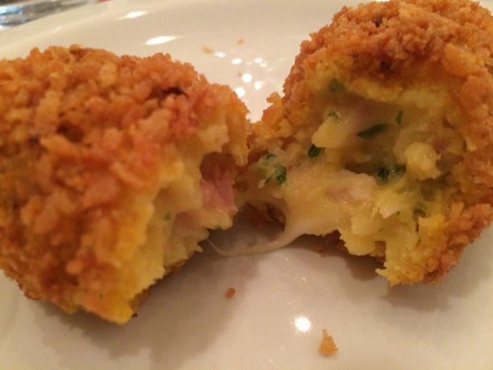 Un servizio partecipato, sveglio ed attento (ci ha colpito in particolare il sorriso di una giovane ragazza napoletana, che sarebbe capace di farvi assaggiare tutto il menu in una sola sera); discreta scelta di birre artigianali e fritti ben eseguiti, dalla panatura più che indovinata: il pan grattato, dalla grana molto grossa, è fatto in proprio e regala sapore e croccantezza a supplì e ‘lingotti’.