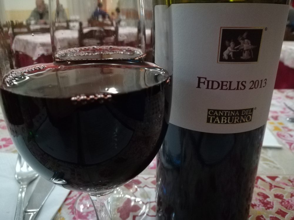 Da bere un Aglianico del Taburno Fidelis 2013 della Cantina del Taburno della vicina Foglianise.