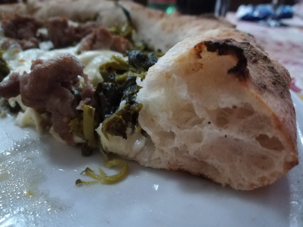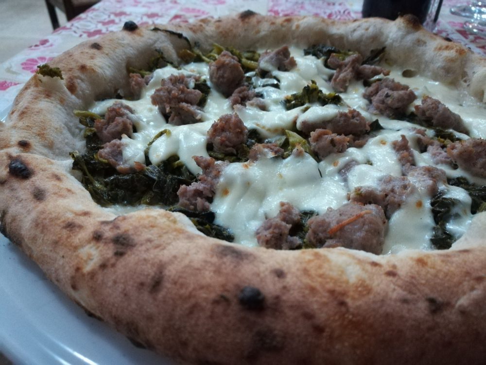 Abbiamo scelto una classica Salsiccia e Friarielli sulla quale risaltava l’ottima salsiccia fatta con tanta carne e un impasto nel quale si sentiva quel leggero profumo di vino bianco che riporta la mente indietro nel tempo, quando era la regola e non l’eccezione l’inserimento del vino come ingrediente indispensabile del “cuoncio” della salsiccia stessa.