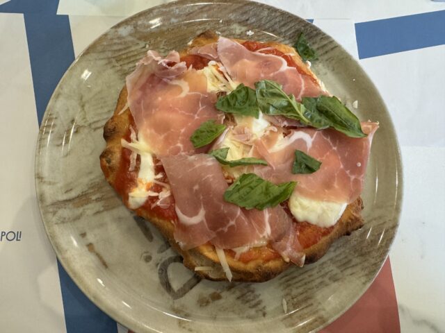 I panetti da 280 grammi regalano un disco molto sottile e scioglievole per una pizza napoletana autentica. Da provare è ‘O Scugniziello, una creazione di Luigi a doppia cottura (fritta e al forno), farcita con ricotta di bufala e condita con pomodoro, prosciutto crudo, mozzarella di bufala DOP, basilico e olio extravergine d’oliva.