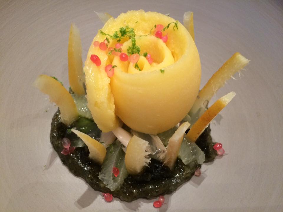Solo gli spettacolari lampadari ricordano la vecchia sala. Poi la prima cosa che colpisce è la luminosità, un rovesciamento di prospettiva, la capacità di reinventare la proposta restando al passo con i tempi che cambiano. Un ristorante di lusso che ha nel suo programma dichiarato la salubrità degli ingredienti e il rispetto dell’ambiente e che poggia su vegetali, mare e cereali. I primi coltivati biologici, il secondo attraverso il rapporto diretto con cooperative di pescatori, i terzi infine reperiti da piccoli produttori anch’essi biologici. Il messaggio è chiaro: oggi il lusso oltre al gusto guarda alla salubrità dei prodotti e alla compatibilità ambientale.