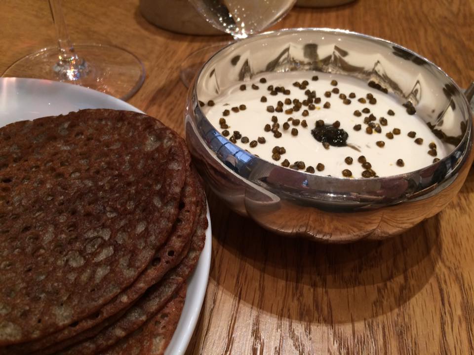 Plaza Athenee, pancakes con panna fresca della Normandia e caviale pressato