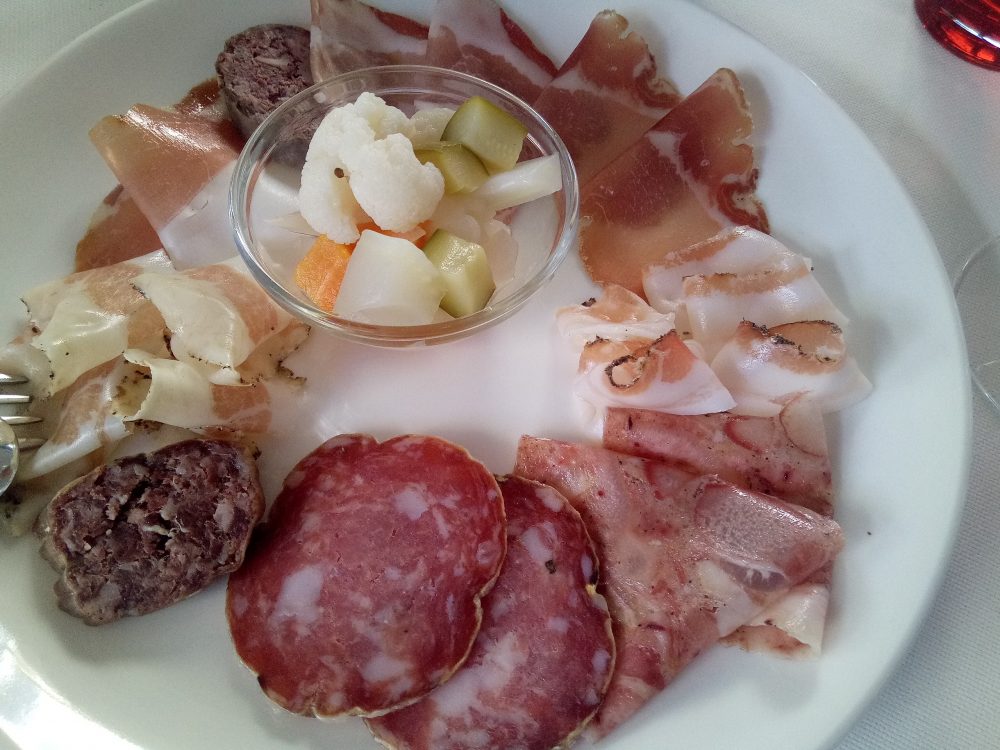 Subito dopo ecco presentarsi nel piatto una bella ed abbondante selezione di salumi locali tradizionali, serviti con giardiniera preparata sul posto. Anche qui è d’uopo non sfigurare e, quindi, cerco di fare del mio meglio.