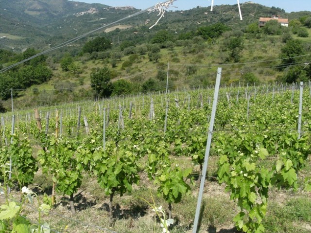 La vigna è denominata “Ciglio di Rutino” ed è posizionata sui fianchi della collina a 230 metri s.l.m, sul classico flysch cilentano, argilloso e calcareo di medio impasto. Sono stato proprio sul posto, insieme con Salvatore, in una radiosa e soleggiata mattinata primaverile, mentre rapito ascoltavo in sottofondo lo zirlìo dei grilli, il cinguettìo degli uccelli e il frinire delle cicale. Il profilo increspato delle montagne tutto intorno contribuiva a creare uno straordinario scenario di incomparabile bellezza, insieme al verde acceso dei filari e alle pennellate multicolori dei minuscoli paesi, aggrappati ai dolci pendii.