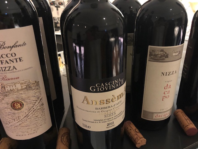 La Barbera di Gianni Bertolino presidente dell’ Associazione Produttori del Nizza Tenuta Olim Bauda possiede un bel naso floreale e fruttato, stoffa elegante e delicata e morbida in bocca. Anssèma Nizza Barbera d’Asti Superiore DOCG Cascina Giovinale 2012 è una Barbera diversa più austera ma sempre con un imprinting fruttato e floreale su fondo tostato e di caffè così come il vino di Bricco Bonfante Nizza Riserva Barbera d’ Asti Superiore DOCG.