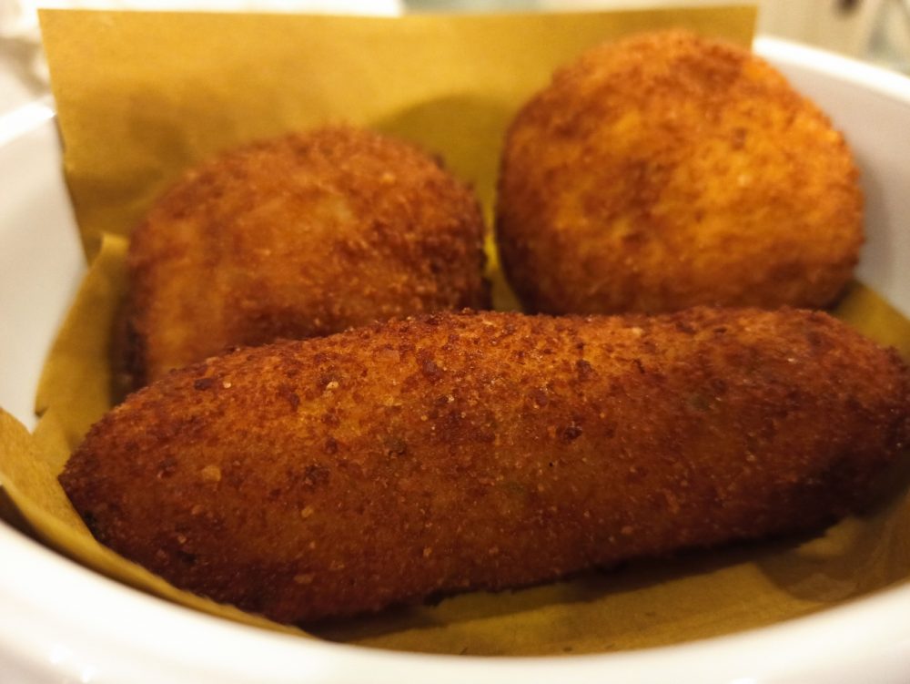 Dopo la pizza non ci perdiamo un assaggio di alcuni fritti artigianali [1,50 euro a pz.]: Arancino al profumo di mandorle e ortaggi; Crocchè di patate del nostro orto; e quello che ci viene detto essere un must irrinunciabile del locale, la Ricottina fritta.