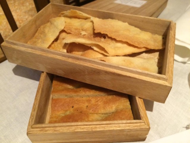 Non amplissima ma ambiziosa ed equilibrata tra champagne e territorio la lista dei vini, eredità dichiarata dei bei tempi del Rigoletto. Simpatica la presentazione ‘in scatola’ di pane, cracker fatti in casa e focaccia: attenzione perché uno tira l’altra, più delle ciliegie.