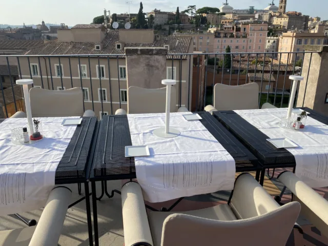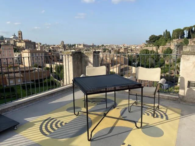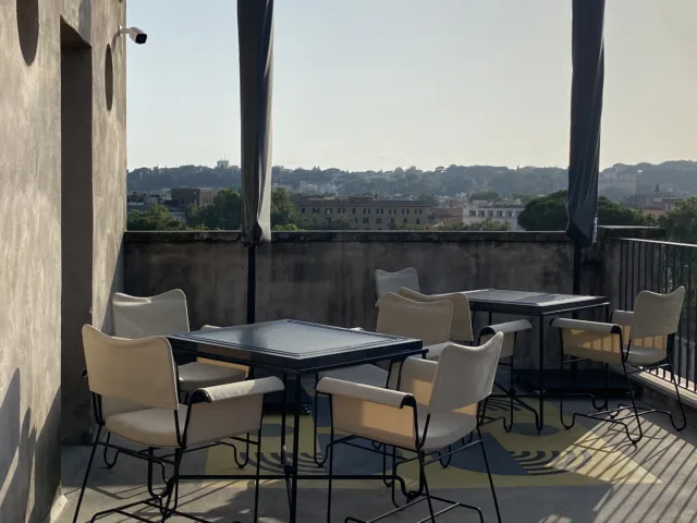Dalla terrazza del Rhinoceros Le Restau & RoofBar, all’interno del minimal palazzo dell’arte di Alda Fendi della Fondazione Rhinoceros, lo sguardo accarezza l’arte e la storia con l’Altare della Patria, i Templi di Vesta ed Ercole, le cupole della Sinagoga e di San Pietro, il Circo Massimo e la Chiesa di Santa Maria in Cosmedin che è un raro esempio di architettura del XII secolo. Il Rooftop esteso su due livelli, firmato da Manfredi Fine Hotels Collection (di proprietà dei conti Goffredo e Leonardo Ceglia Manfredi) che gestisce il Rhinoceros Le Restau & RoofBar, ha creato uno spazio gastronomico e di mixology su una delle terrazze più glamour e belle di Roma, con la supervisione in cucina dell’Executive chef Giuseppe Di Iorio del ristorante Aroma (una stella Michelin), che in termine di panorama gode di quello del Colosseo. Rhinoceros Le Restau & RoofBar è un luogo dove concedersi una pausa esclusiva affacciati sugli scorci belli della città, fruibile tutto l’anno e dall’atmosfera rilassante nell’arredo essenziale, dove le comode poltroncine fanno da corollario all’avvolgente accoglienza.