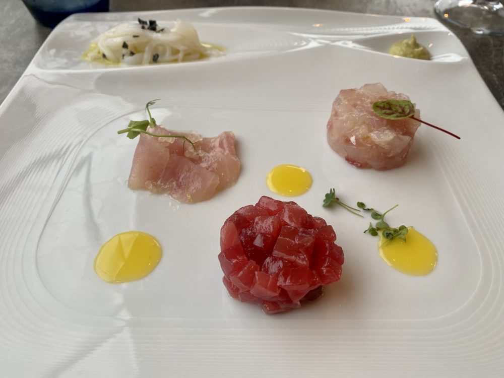 Tartare di sarago, carpaccio di lampuga, la tagliatella di seppia – Riccio Restaurant