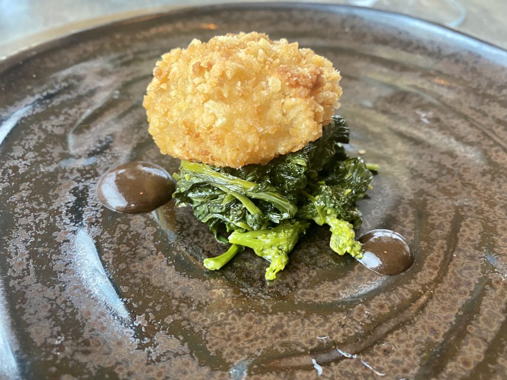baccala’ croccante con friarielli flegrei e aglio nero – Riccio Restaurant