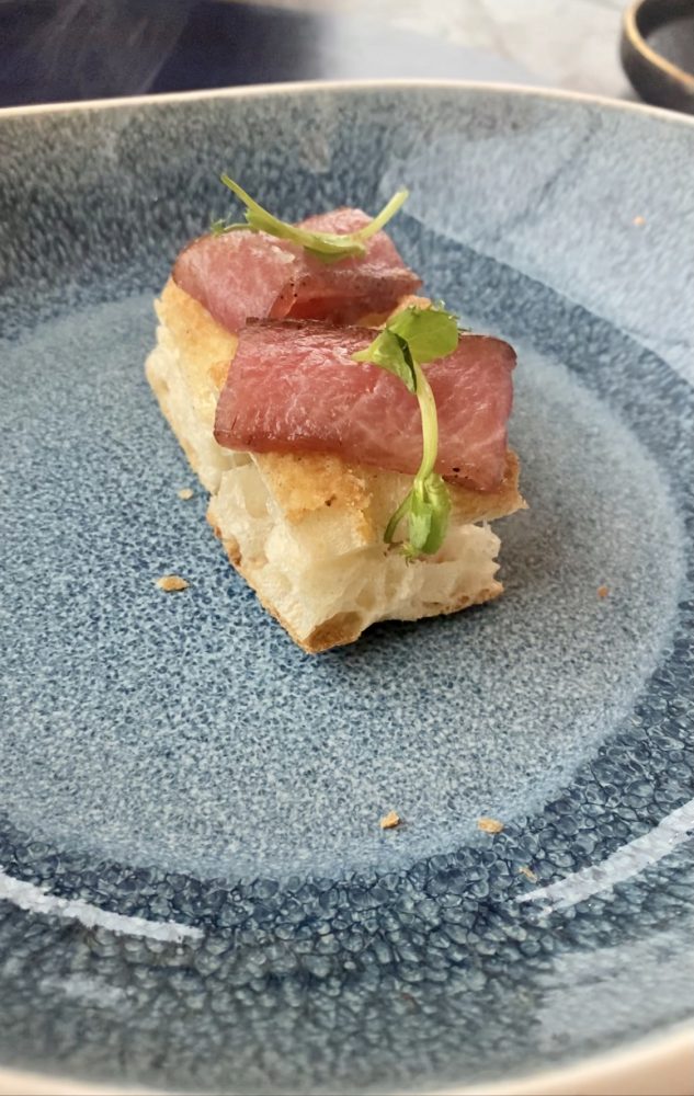 focaccina tostata e speck di tonno rosso leggermente affumicato – Riccio Restaurant