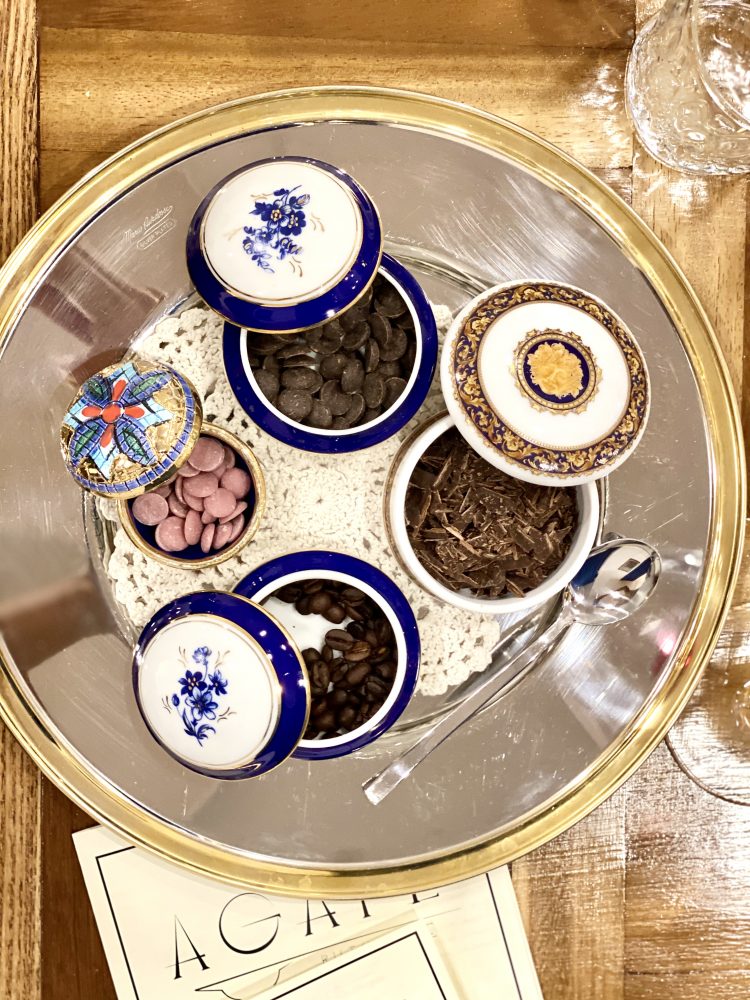 Poi i dessert e il fine pasto con il cioccolato proveniente da diversi siti del mondo, da abbinare all’ampia carta dei distillati.