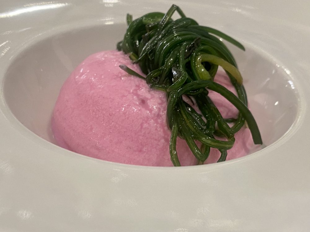 Nel nuovo menù suggerisco di iniziare con l’aperitivo contemporaneo: Zeppolina salata con caprino e polvere di liquirizia; Tacos con provolone scottato a fiamma viva, aceto ai lamponi e germogli di porro; Cono croccante alle nocciole con ragù di maiale e polvere di origano; Cannolo di alga nori con tartare di manzo e sferificazione di erbe aromatiche; Pinzimonio di verdure baby.