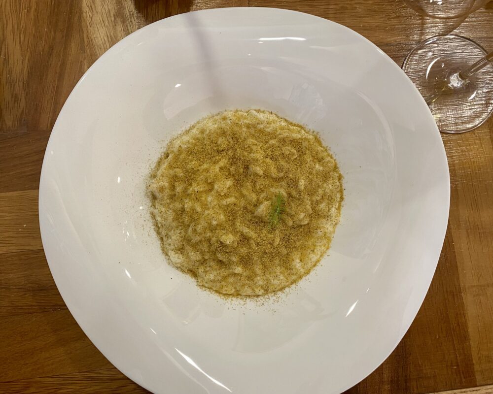 Agape – Risotto al bianco di baccala’ polvere di capperi e limone candito