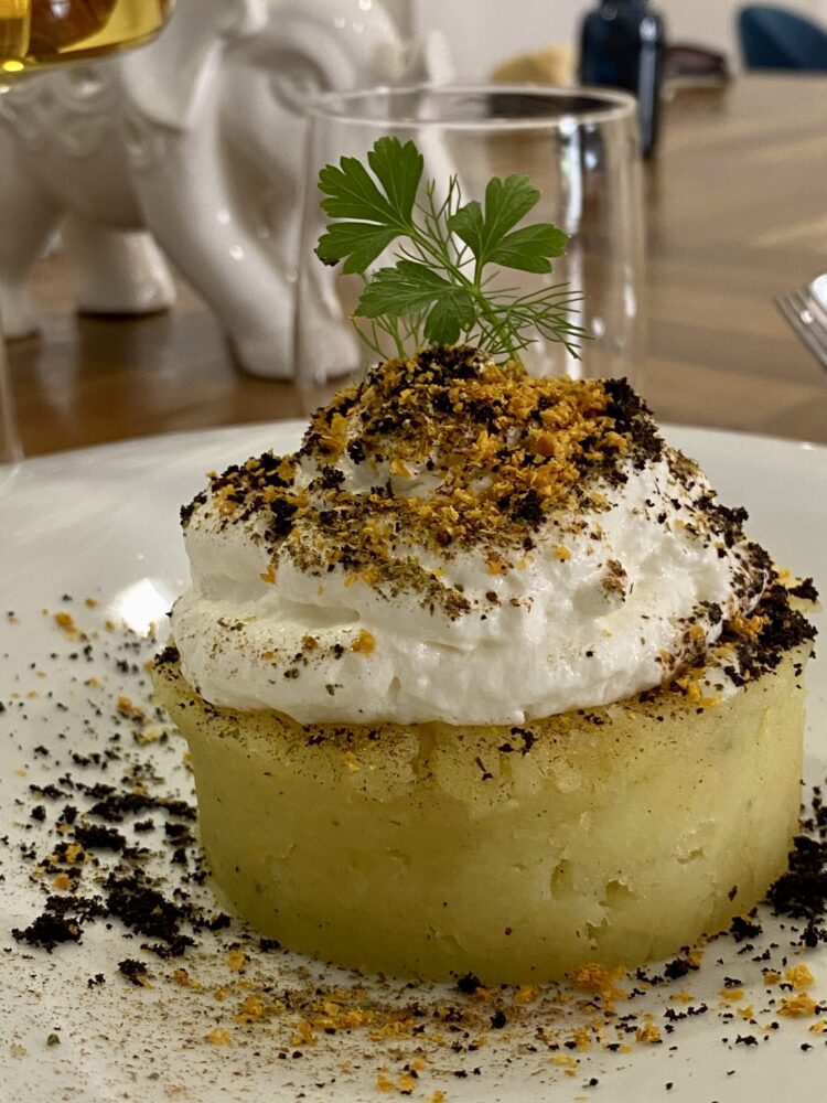 Agape – Patata schiacciata con uovo cotto a 65gradi e spuma di provolone